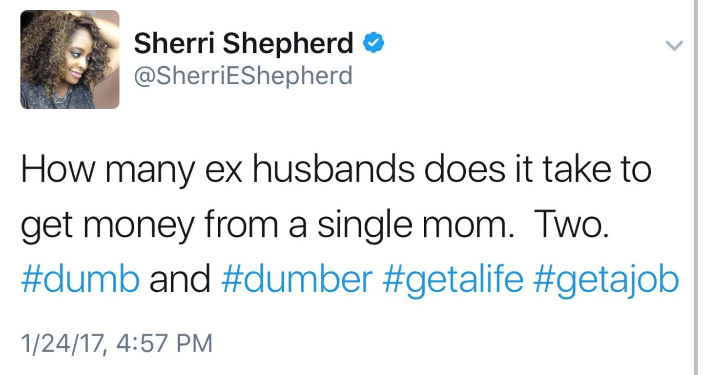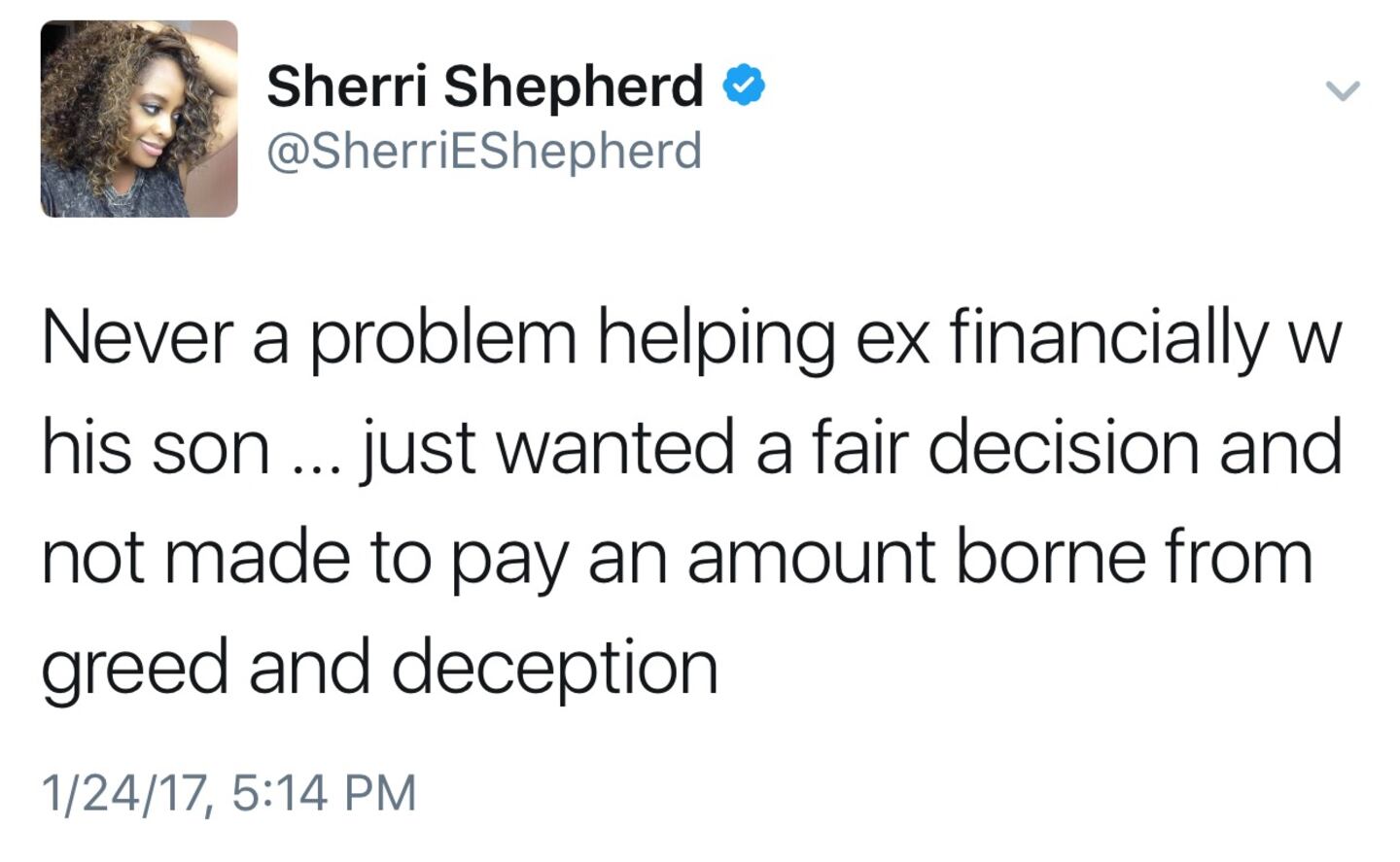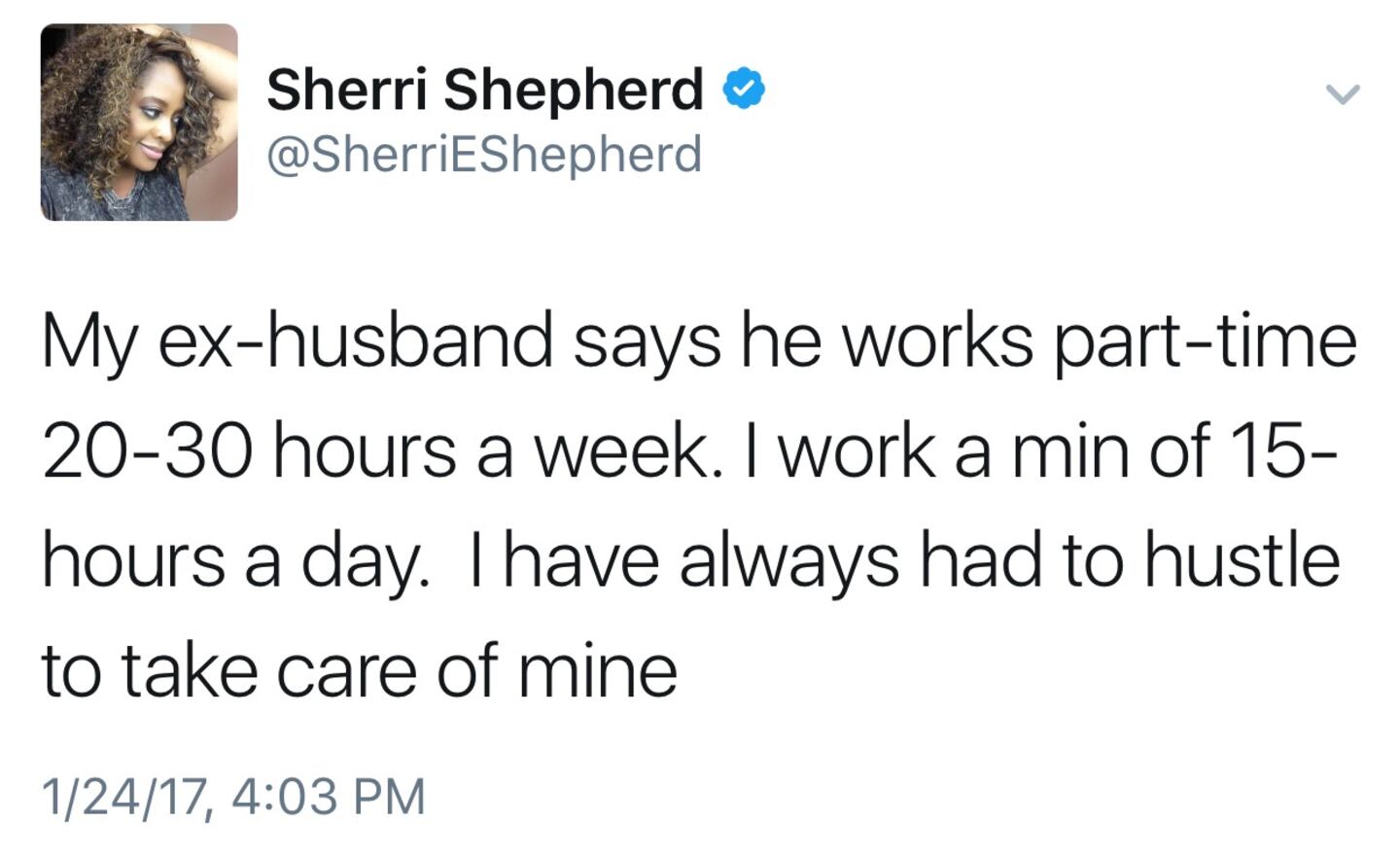 Sherri Shepherd took to Twitter after the story came out that her ex-husband Lamar Sally’s most recent request for more money has been denied in a California court.