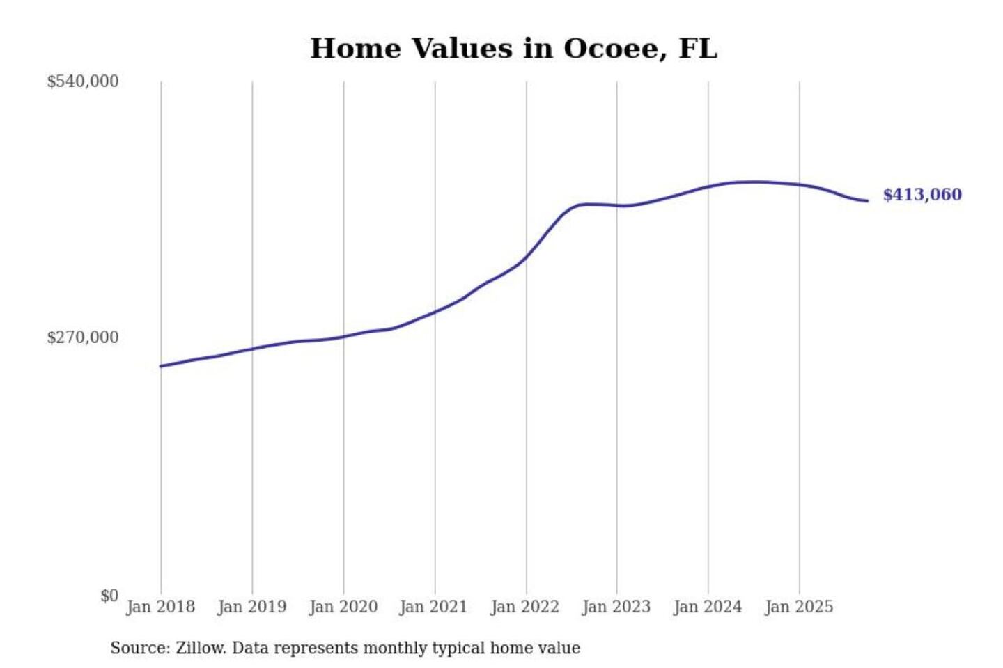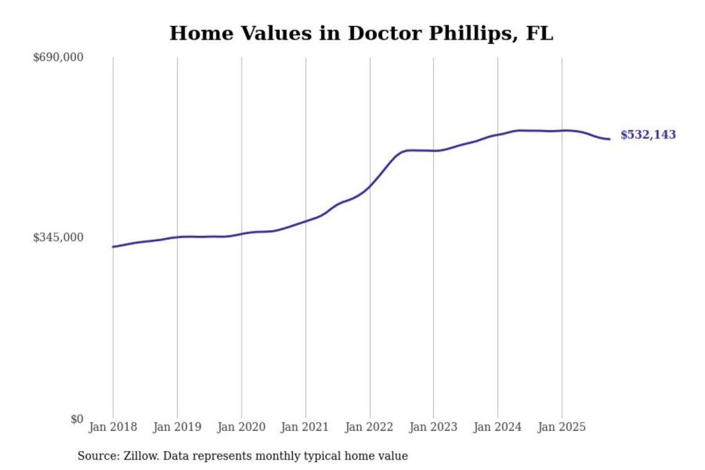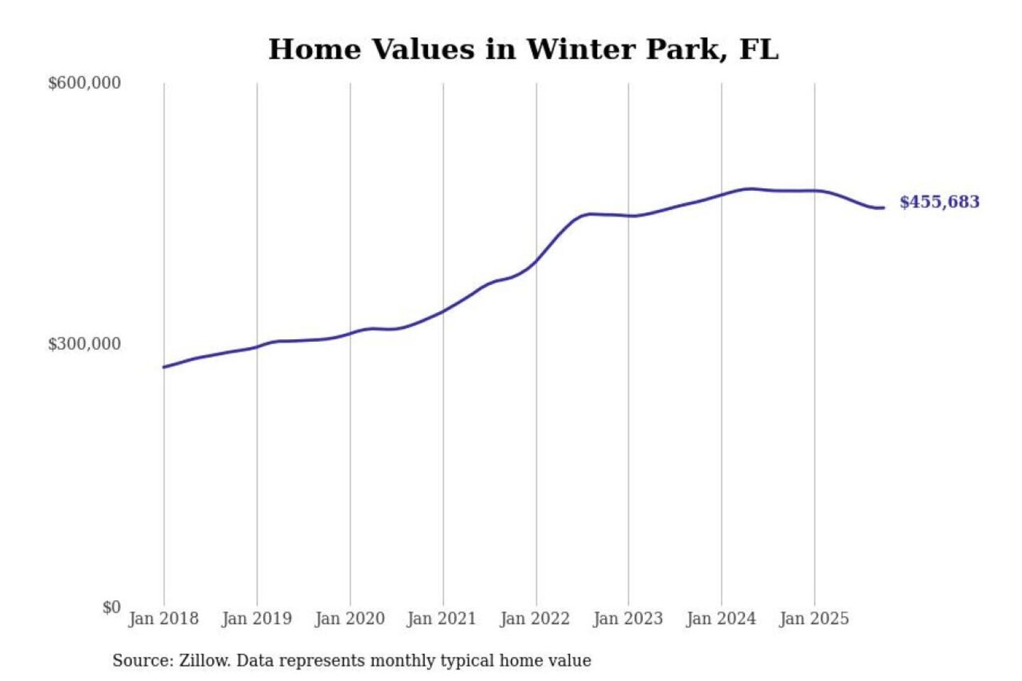 Stacker compiled a list of cities with the most expensive homes in the Orlando metro area using data from Zillow. Charts show the monthly typical home value since January 2018. Data was available for 55 cities and towns.