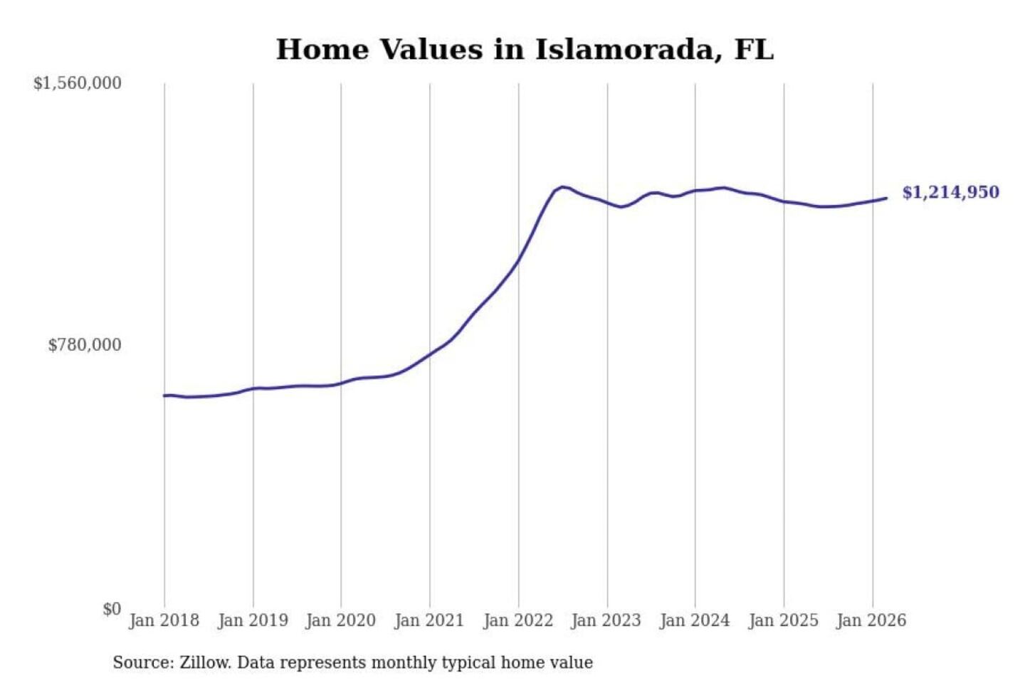 Stacker compiled a list of cities with the most expensive homes in Florida using data from Zillow. Cities are ranked by the Zillow Home Values Index for all homes as of March 2026. The charts in this story were created automatically using Matplotlib.