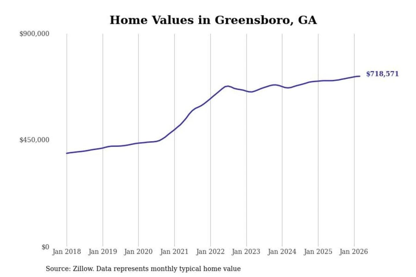 Stacker compiled a list of cities with the most expensive homes in Georgia using data from Zillow. Cities are ranked by the Zillow Home Values Index for all homes as of March 2026. The charts in this story were created automatically using Matplotlib.