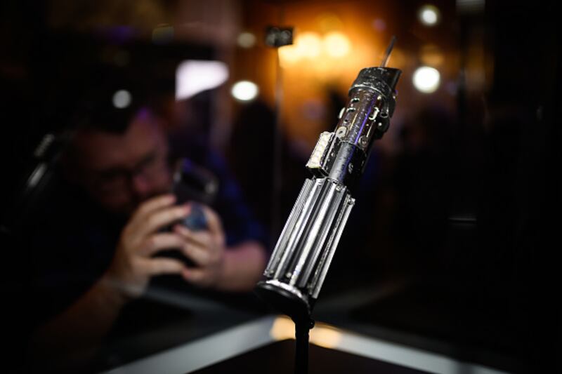 Darth Vader's Lightsaber The screen-matched lightsaber prop, used by the character "Darth Vader" in the Star Wars films "The Empire Strikes Back and "Return Of The Jedi", is displayed at a photocall ahead of an auction of entertainment memorabilia by Propstore, on August 06, 2025 in London, England. (Photo by Leon Neal/Getty Images) (Leon Neal/Getty Images)