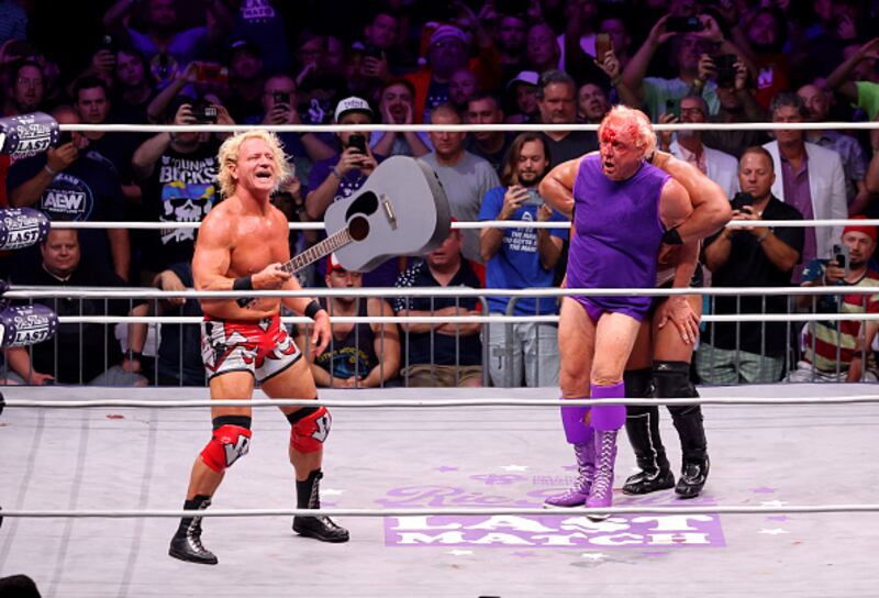 Photos: Ric Flair through the years 2022: Jeff Jarrett and Ric Flair in action during Ric Flair's Last Match at Nashville Municipal Auditorium on July 31, 2022, in Nashville, Tennessee. (Jason Kempin/Getty Images)