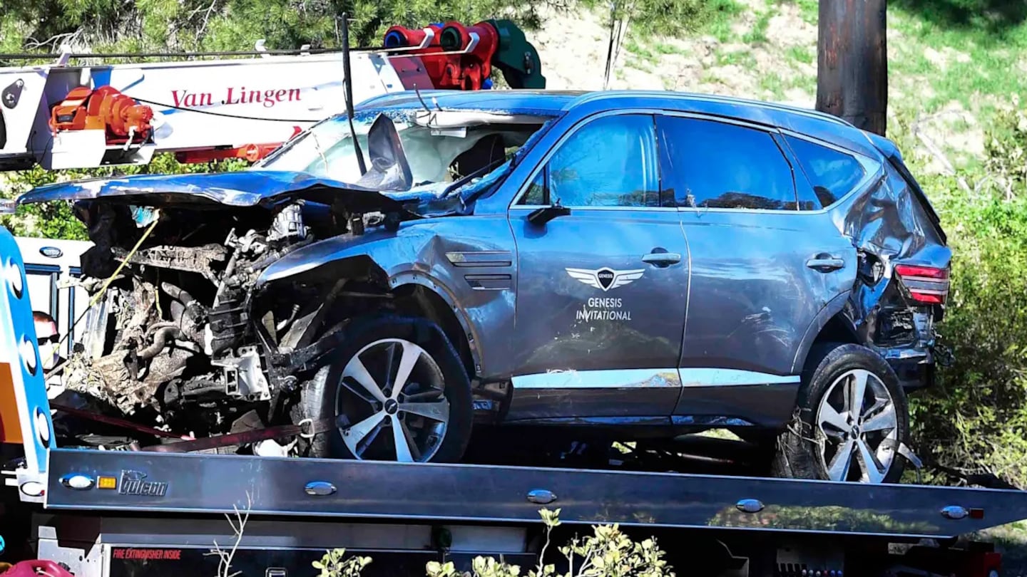 On Feb. 23, 2021, Woods suffered his most serious accident in a vehicle. He was involved in a single-car crash near Los Angeles while on his way to a photo shoot. Authorities said Woods lost control of his 2021 Genesis GV80 SUV at about 7:12 a.m. PT, according to the Los Angeles Sheriff’s Department.