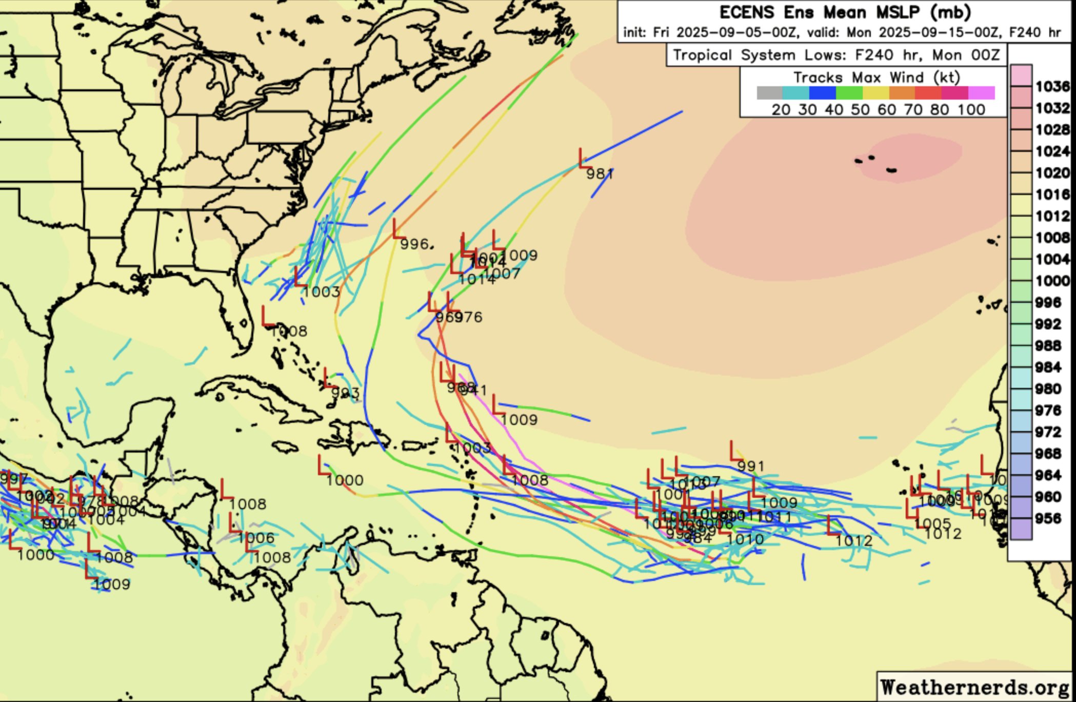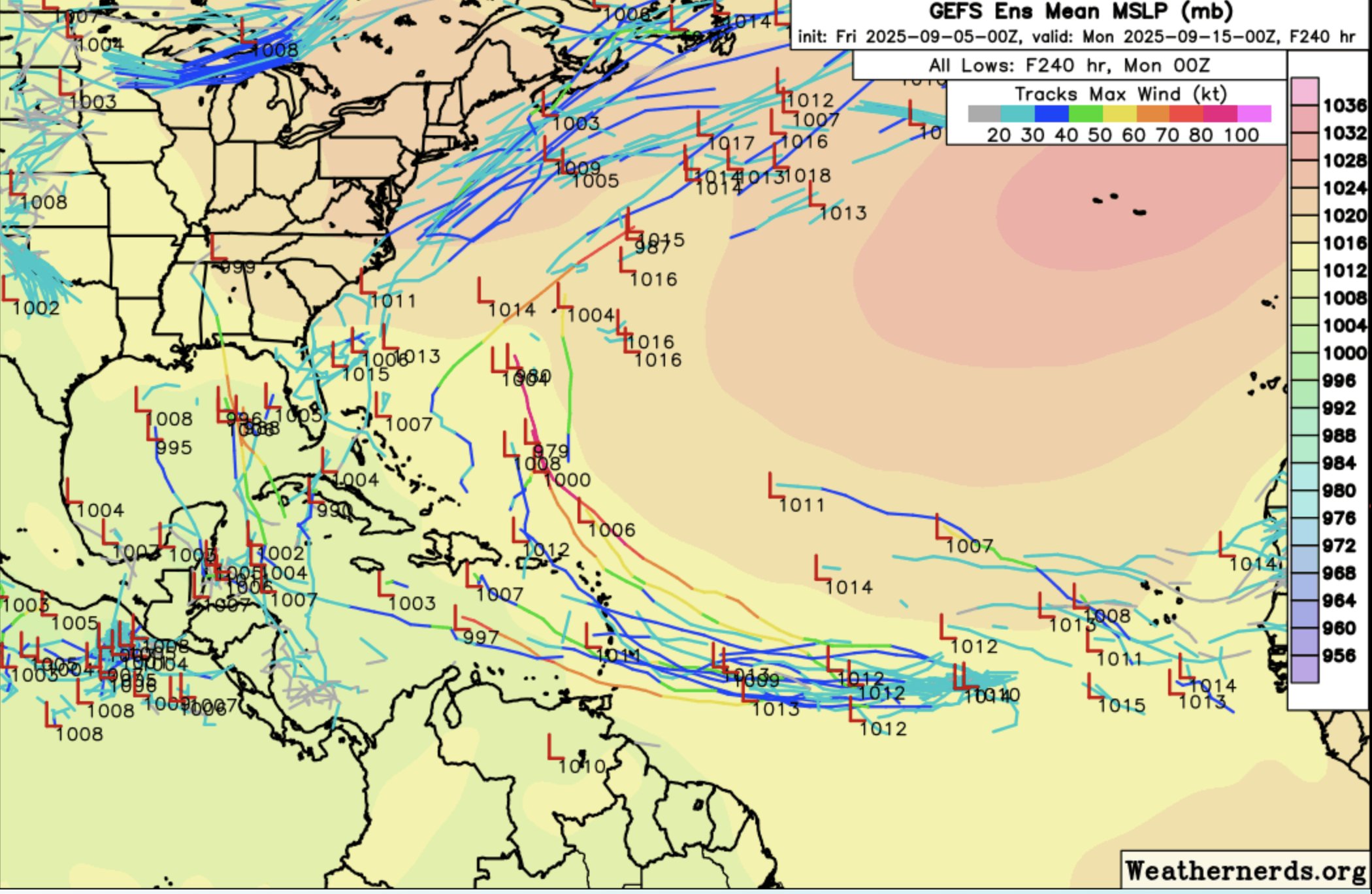 Back to the modeling... the GEFS is particularly “low pressure happy” which is a typical bias. We’ve seen the GFS model this season with a right or an east bias. The Google Weather Lab “DeepMind” has also had an east bias this season & generally has not been very good until a system has developed. The European model has had a bias toward over-developing (too strong) tropical cyclones.